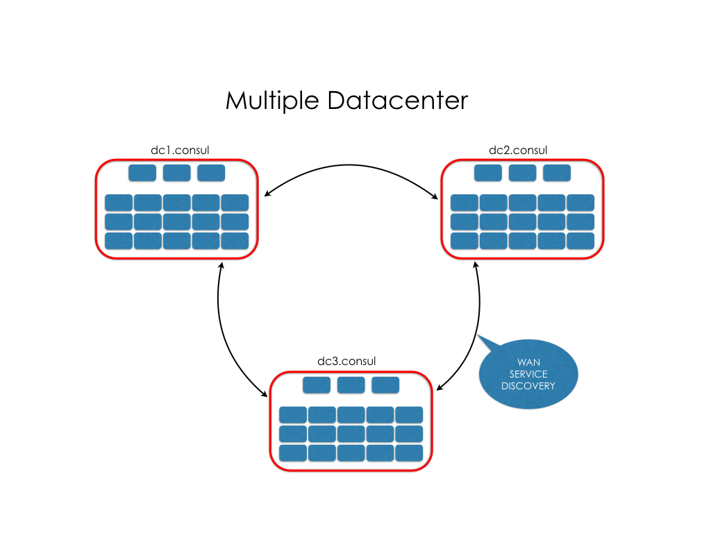Each datacenter contains a set of control nodes and computes nodes. The architecture is “share nothing” with the exception of Consul. Consul nodes for all datacenters are automatically joined together to form a single WAN gossip pool. This enables application to local instance in the same datacenter and instances other datacenters with DNS or the Consul exposed API.