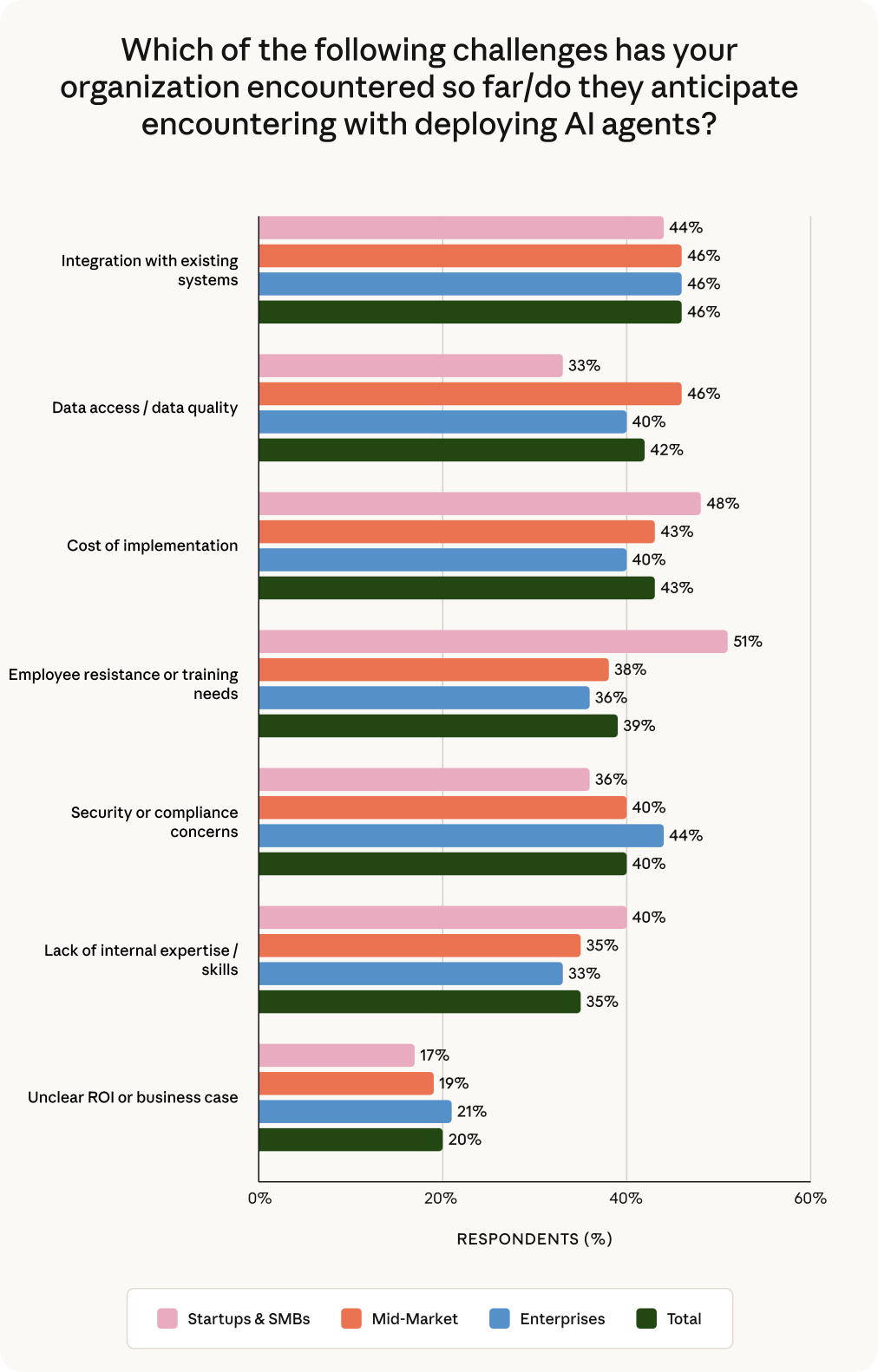 虽然数据很好看,但这不意味着部署 AI Agent 是件容易的事。